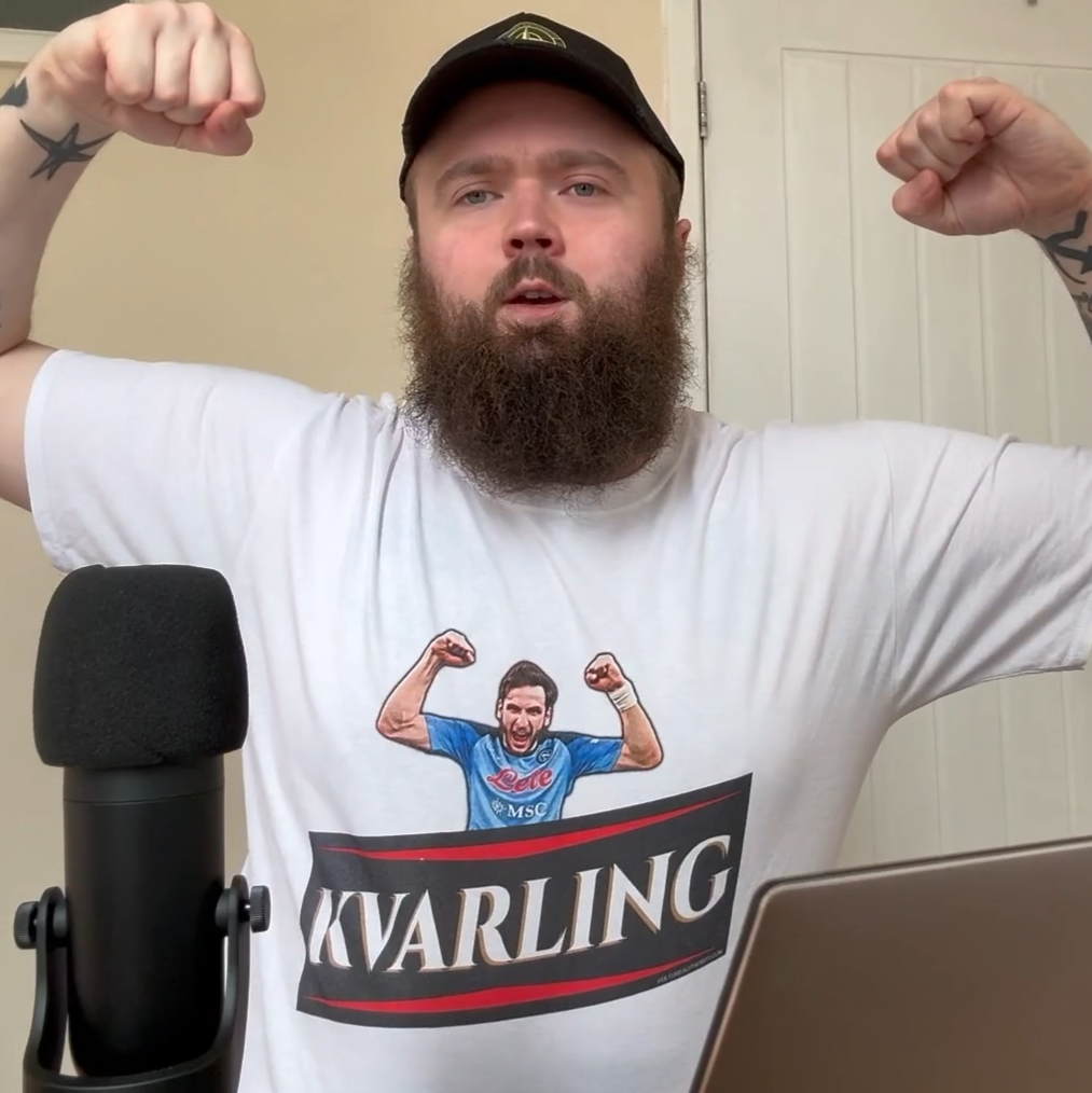 The white ‘Kvarling’ t-shirt. Available in Extra Small, Small, Medium, Large, Extra Large, Double Extra Large and Triple Extra Large.
